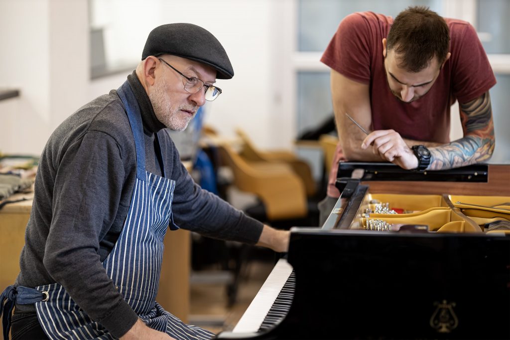 - regulacja mechanizmu, w tym dokładne ustawienie głębokości gry klawiszy i momentu wyzwolenia młotka,