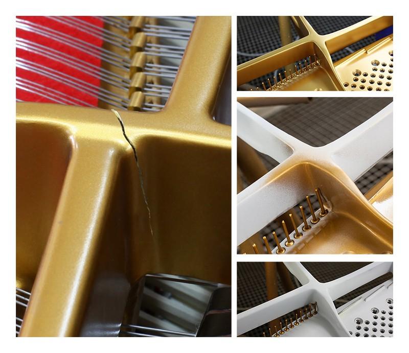 Ze względu na dużą zawartość węgla i wynikającą stąd kruchość żeliwa, rama fortepianu jest trudna do spawania. Jednak dzięki wypracowaniu przez nas sprawdzonych metod i procedur na życzenie klienta podejmujemy się również spawania ram fortepianów.
